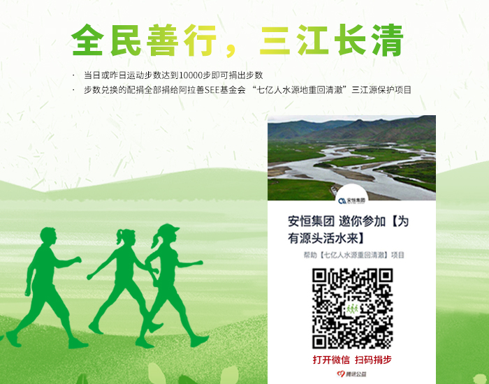安恒集团自2018年11月发起“为有源头活水来”三江源保护公益捐步活动,至今已有近7万人参与,安恒为三江源保护配捐近10万元。全民善行,三江长清,期待您的加入,让我们走的每*步都具有生态环境价值。