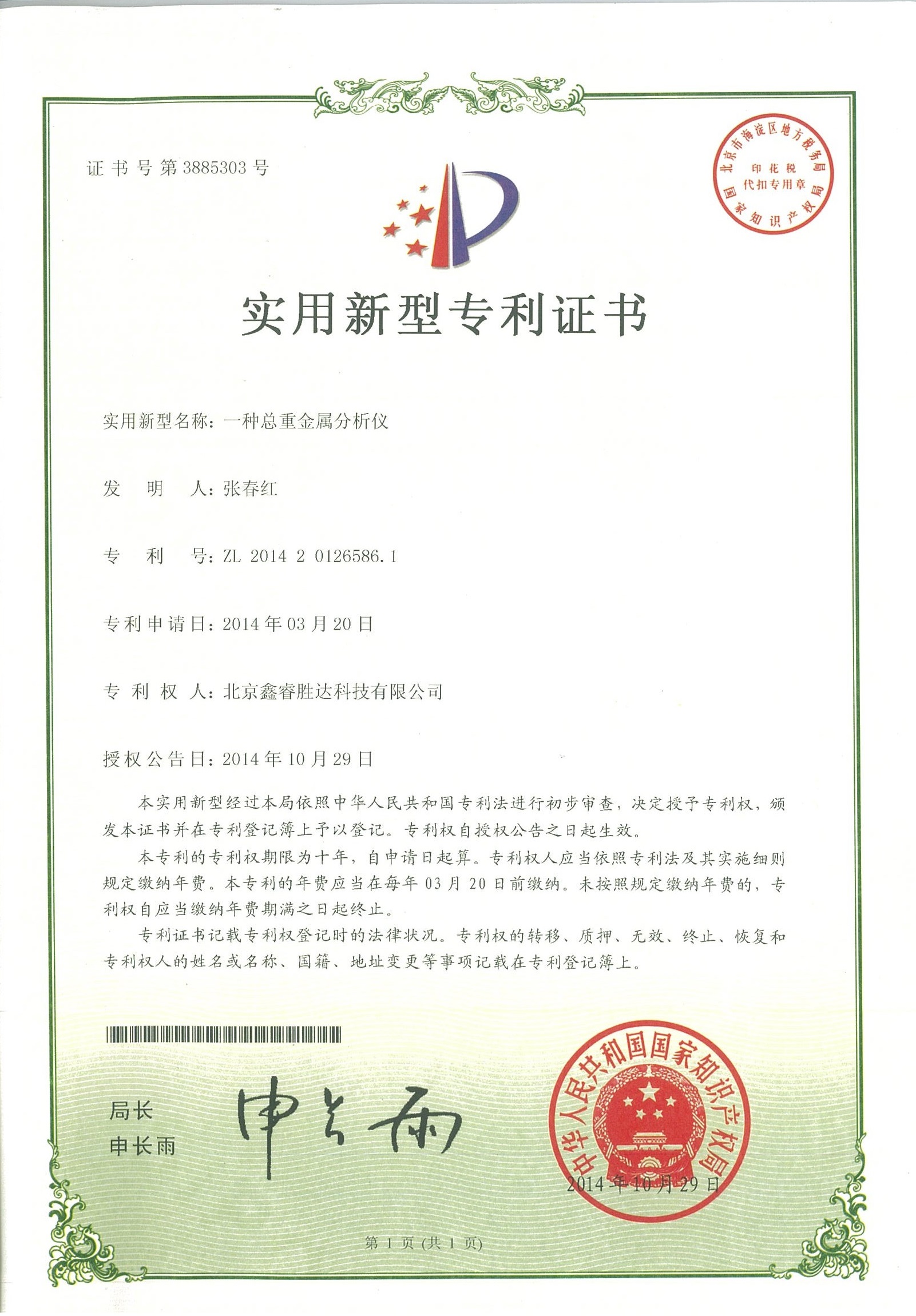 实用新型—— 一种总重金属分析仪